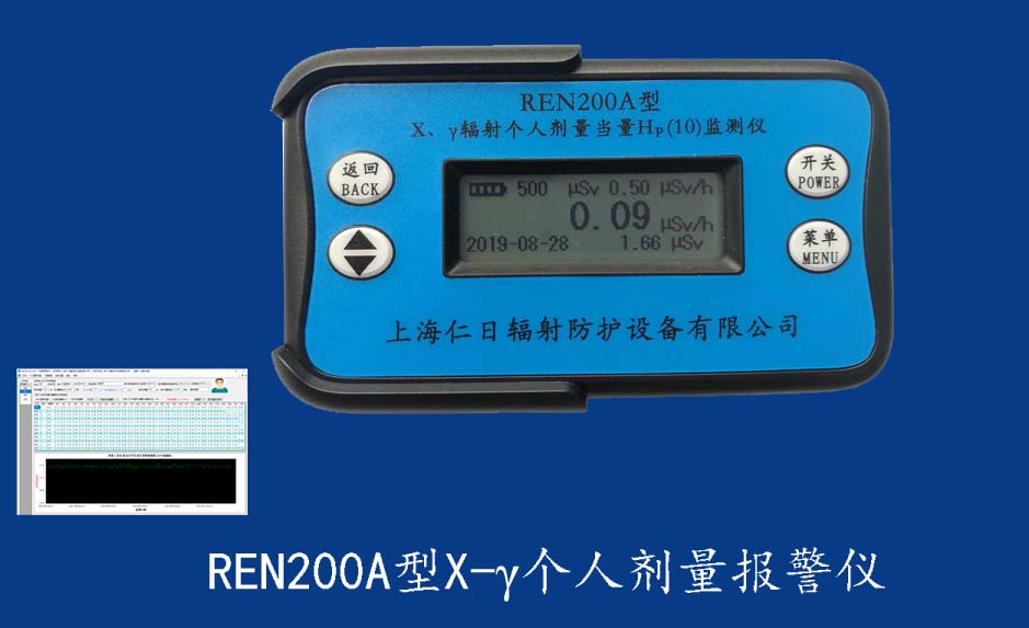 REN200A 個人輻射報警儀REN200A型X、γ輻射個人劑量當(dāng)量HP(10)監(jiān)測儀(簡稱:個人劑量報警儀)內(nèi)置高靈敏度蓋格計數(shù)管為探測器,主要用來監(jiān)測各種放射性工作場所的X、γ以及硬β射線的輻射,具有響應(yīng)快,測量范圍寬的特點。能顯示工作場所的劑量當(dāng)量率和累積劑量,更換電池時,日期及累積數(shù)據(jù)能永久保存。可選配RenRiPersonal個人劑量管理軟件,該軟件可存儲多個人的歷史數(shù)據(jù),能記錄日累積、月累積、年累積、輻照時長、計算平均劑量率、扣除或不扣除本底輻射,且以文字和圖譜的方式展現(xiàn)數(shù)據(jù)。廣泛應(yīng)用于核電站、加速器、鋼鐵、化工、同位素應(yīng)用、工業(yè)X、γ無損探傷、放射醫(yī)療、鈷源治療、γ輻照、放射性實驗室、核設(shè)施周圍環(huán)境監(jiān)測等領(lǐng)域中的工作人員進(jìn)行個人安全防護(hù)監(jiān)測及放射性提示。&nb